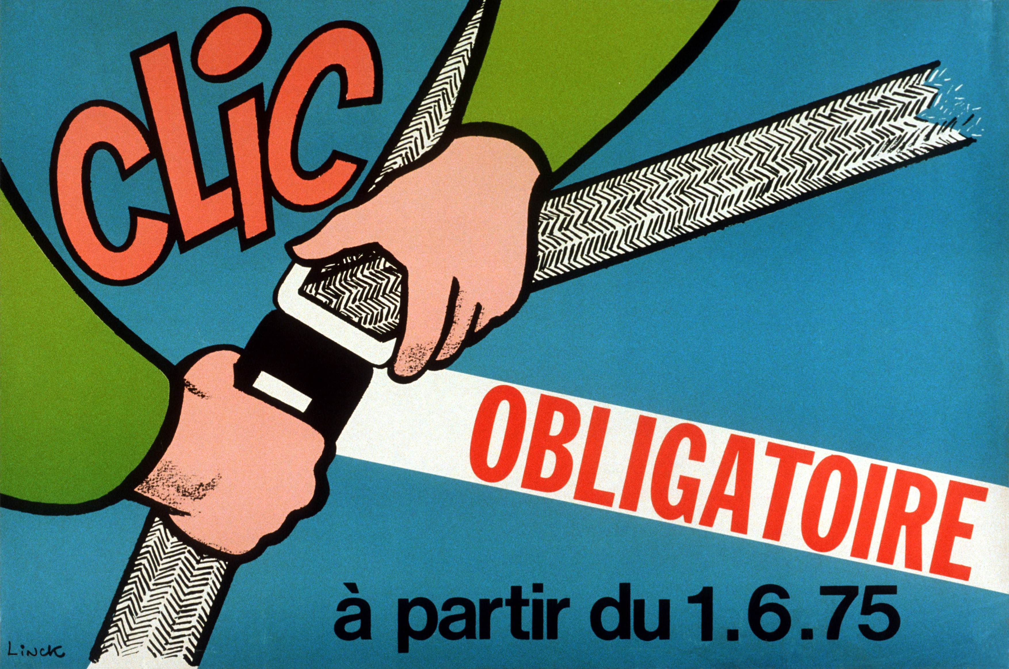 En 1975, une campagne est lancée pour informer le grand public de l’obligation du port de la ceinture