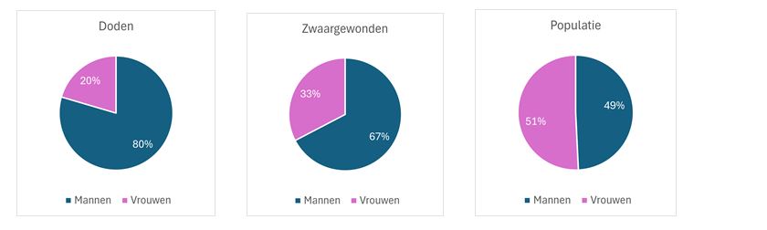 80% van de verkeersdoden in ons land zijn mannen. Dat percentage stijgt de laatste jaren zelfs lichtjes, want 10 jaar geleden ging het over 77%. Bij de zwaargewonden zijn 67% van de slachtoffers mannen.