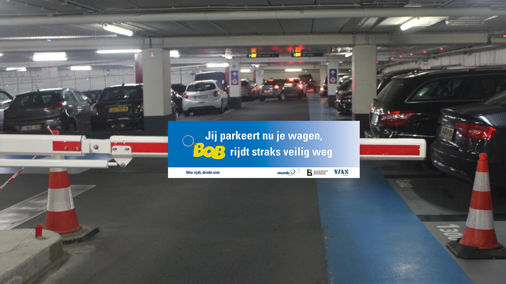 Om die boodschap kracht bij te zetten, zullen in 35 parkings in 17 steden (in het netwerk van Indigo, Interparking, MyPark en Apcoa) bestuurders bij het binnenrijden op de slagbomen al de BOB-boodschap te zien krijgen. Van Oostende tot Verviers krijgen bestuurders op die manier nog een laatste krachtige herinnering aan het gewenste gedrag vooraleer ze de stad intrekken voor een terrasje of etentje.
