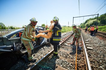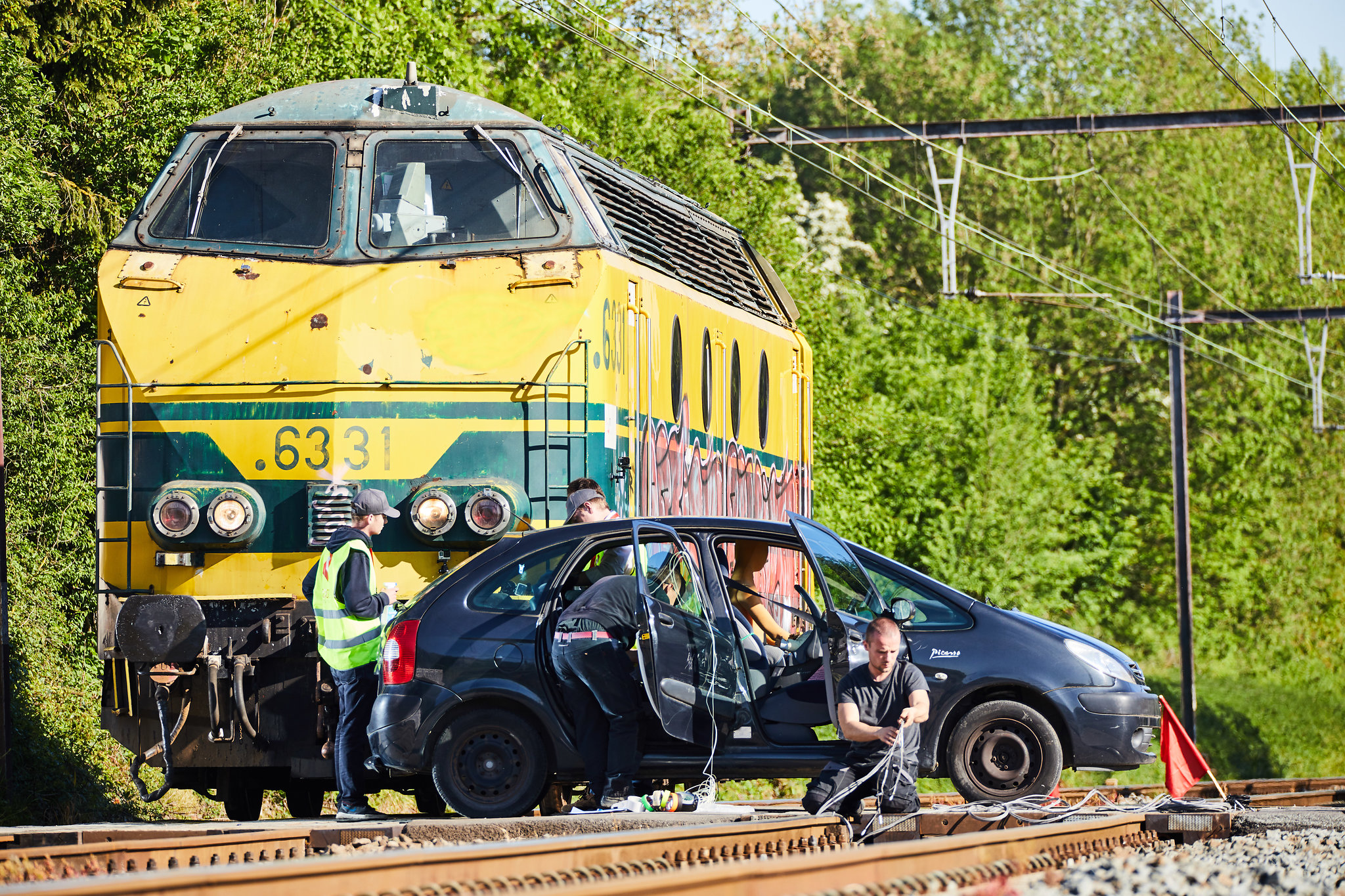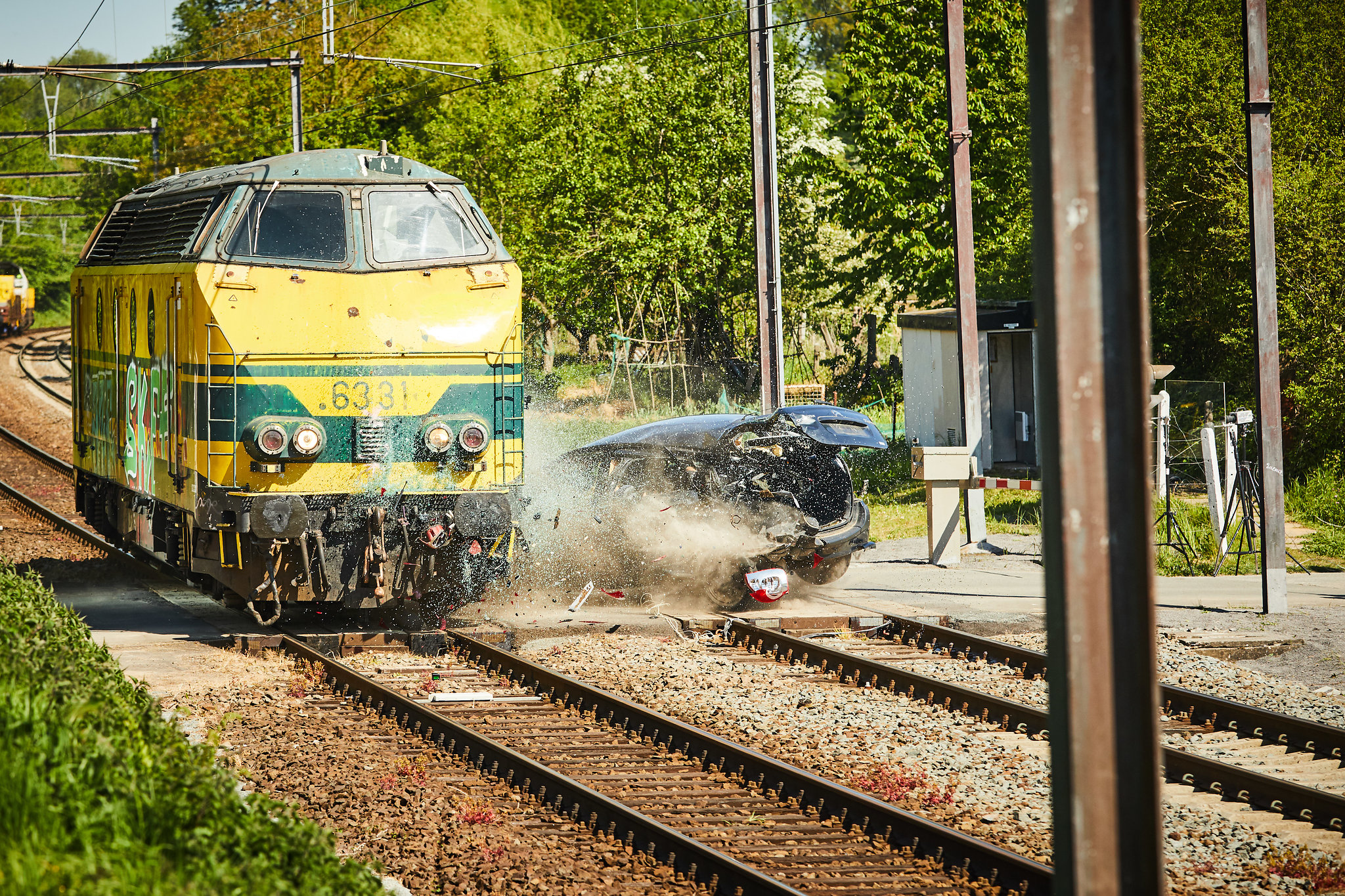In het kader van een grote sensibiliseringsactie aan spoorwegovergangen heeft Vias institute, samen met Infrabel, de brandweer, de spoorwegpolitie en Securail deelgenomen aan een unieke campagne: een crashtest in reële omstandigheden, maar in alle veiligheid uitgevoerd.
